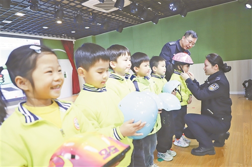 日前,余干县实验幼儿园联合县公安局交通警察大队开展交通安全宣传活动,提升孩子们的安全意识和自我保护能力。 本报全媒体记者 赵 影摄
