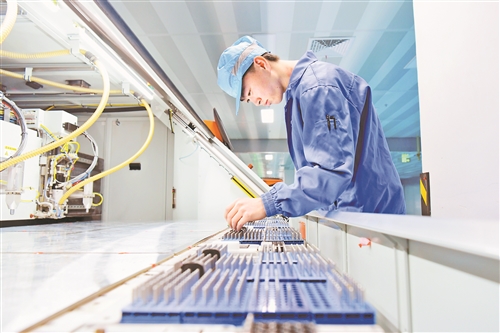 12月10日,宁都工业园区江西新亿科技有限公司生产车间内,工人正赶制新能源汽车线路板。眼下,该县各企业开足马力忙生产,全力冲刺全年目标任务。通讯员 钟院兰摄