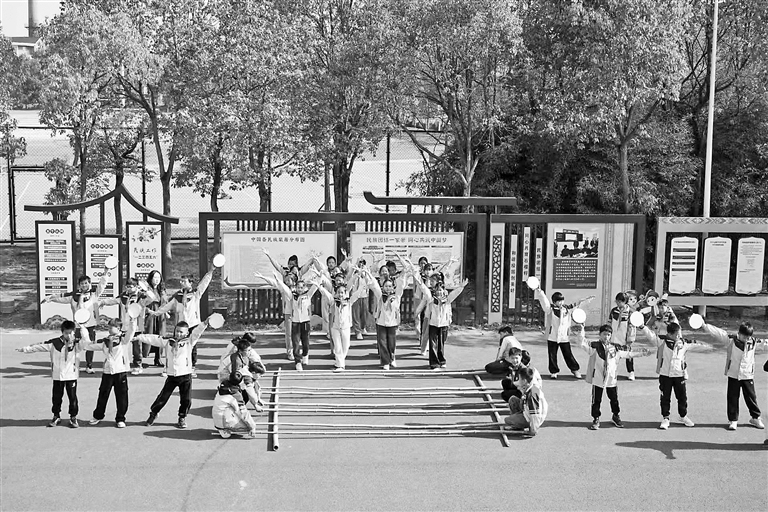 今年以来,德兴市扎实开展铸牢中华民族共同体意识进校园活动,以民族团结进步教育赋能全方位育人。图为近日,该市香屯学校开展畲族竹竿舞编排活动,打造民族团结进步教育精品课程。 通讯员 詹求昊摄