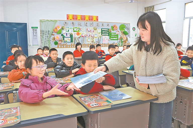 12月14日,温春兰翻着女儿领到的免费教辅资料,笑得合不拢嘴:“以前三科教辅资料要花100多元,现在一分钱不花,孩子还学得带劲。”