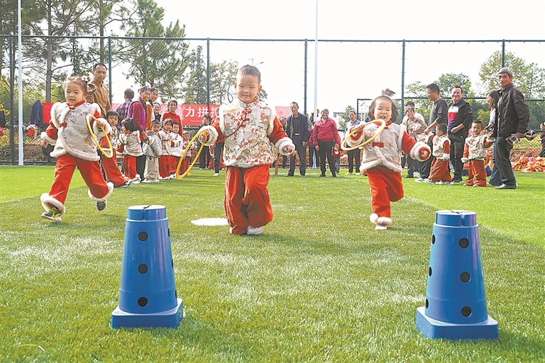 近日,会昌县庄埠中心幼儿园举办国风亲子趣味运动会。孩子们在感受传统文化魅力的同时锻炼了身体,助力家园共育走深走实。 本报全媒体记者 曹章保摄