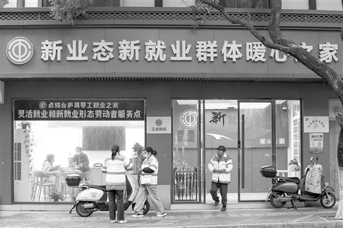 近年来,庐山市采取“工会+劳模”运营模式,将工会驿站打造成暖心之家,向环卫工人提供免费早餐,定期开展劳模义诊等活动。图为12月12日清晨,南康镇环卫工人完成街道保洁工作后,在工会驿站享用免费早餐。 特约通讯员 韩俊烜摄