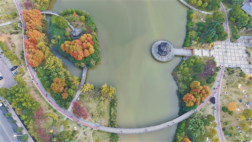 近日,宁都县龙溪湖生态公园内,市民在湖边散步,乐享冬日美好时光。本报全媒体记者 杨文斌摄
