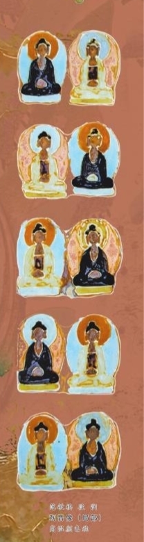 经过无数次配方调整与烧制试验,范敏祺团队创新性地将高温颜色釉与釉下彩绘相结合,精准复原了四个不同时代、各具特色的敦煌石窟。