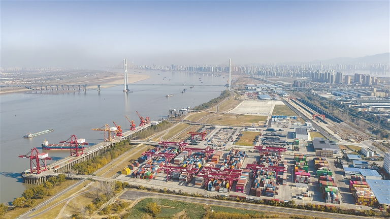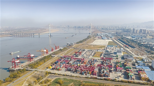 12月14日,位于九江经济技术开发区的九江兴港集装箱码头货物吞吐,一片繁忙景象。特约通讯员 魏东升摄