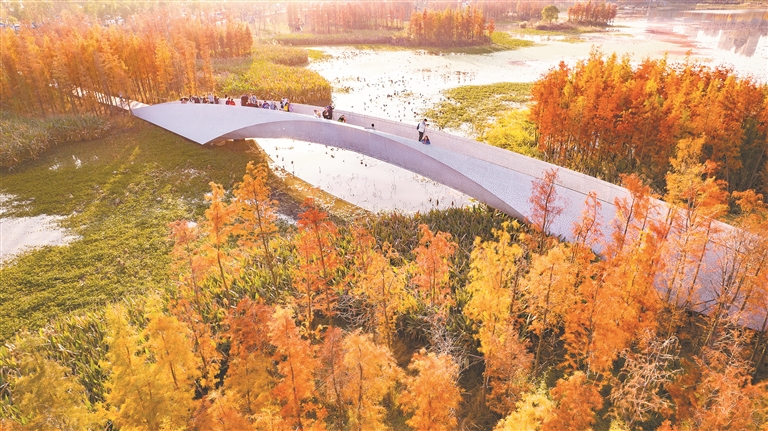 “十四五”时期,南昌高新区牢记“国之大者”,民生福祉持续增进。既要金山银山,又要绿水青山,全力打好蓝天、碧水、净土保卫战,空气质量优良率达95.3%,国控、省控断面水质优良率达100%,精心打造1100亩尾水公园、2000亩航空公园,人均公园绿地面积较国家生态园林城市标准高出3平方米;持续完善五星白鹤保护小区管理管护机制,吸引2800羽白鹤来此越冬,被誉为“全世界距离白鹤最近的地方”。