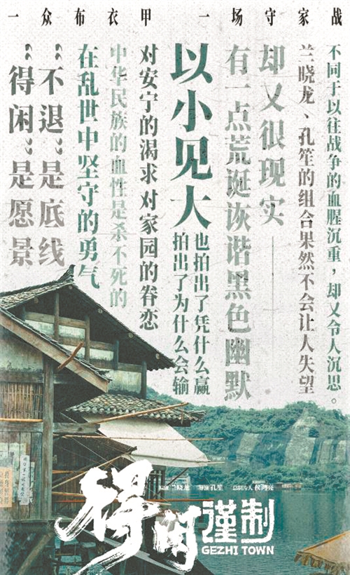 电影里的戏剧冲突不少。首先是戈止镇的名字。这名字本来表示止戈为犁,却因连笔被认成了“武”字,为后面戈止镇血流成河埋下了伏笔。其次是电影采用大量留声机质感的配乐,软糯婉转的吴语歌曲与时代背景异常割裂,让观众生出一种荒诞感。战争电影一般为宏大叙事,《得闲谨制》却聚焦于隐秘角落和边缘人物,战斗就发生在一屋一舍、一砖一瓦间,空间的异质性让战争主题有了更大的反差,视觉效果让观众紧张刺激。