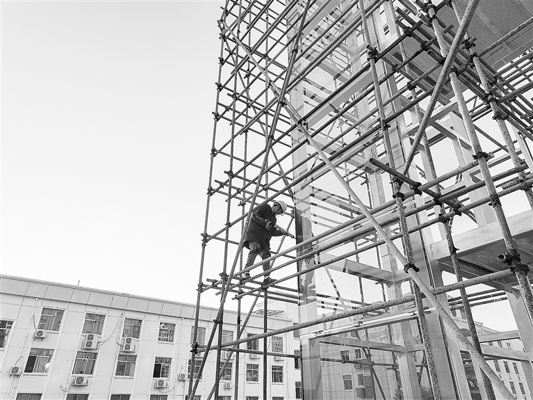兴国县在老旧小区改造中,推进相邻小区及周边地区联动改造,从“小切口”入手,整体提升社区公共服务配套水平。图为12月18日,当地老旧小区正在加装电梯。