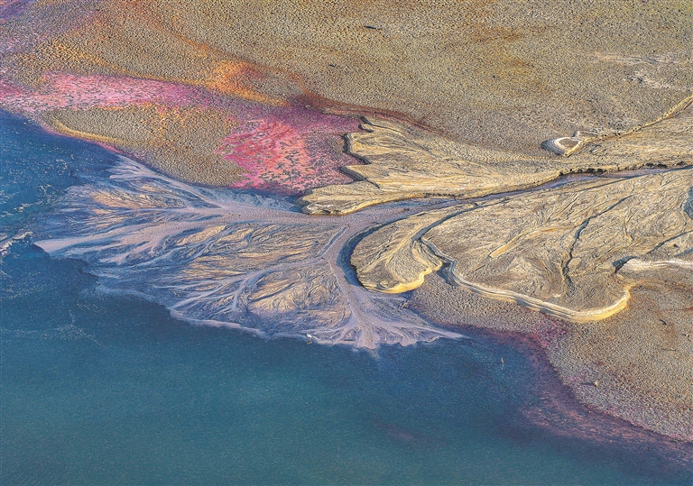 12月20日,乐安县南村乡东元水库,枯水期的滩涂褪去“水衣”,裸露的矿物质勾勒出交错纹路,像打翻的调色盘,晕染出迷人的层次,构成一幅大自然立体油画。