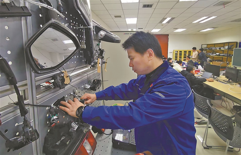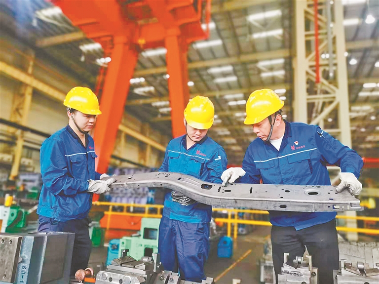 既追求科研的突破,也鼓励一线的创新,南昌市智造升级蹄疾步稳。近日,记者走进位于南昌小蓝经济技术开发区的江铃汽车股份有限公司富山工厂车间,只见公司模具钳工首席技师刘辉带领“刘辉劳模创新技能大师工作室”的伙伴们,正将一项技术创新落实到生产一线。