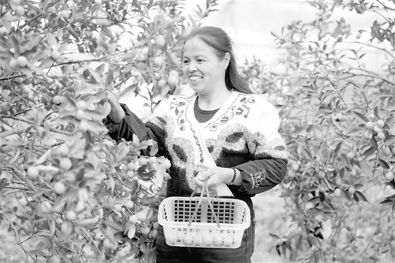 近年来,遂川县深耕金橘特色产业,以“生态种植+品牌打造”拓宽增收路,小小的金橘成为“致富果”。图为12月25日,堆子前镇的金橘园里,果农忙着采摘金橘。 通讯员 李建平摄
