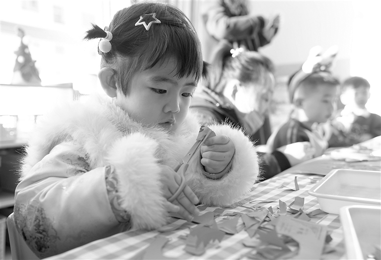 12月27日,孩子们在剪纸艺人的带领下体验剪纸艺术。新年临近,宁夏银川市邮电幼儿园举办“非遗传承 萌宝迎新年”活动,邀请醒狮、剪纸、糖画、川剧变脸等非遗项目传承人,现场为孩子们带来展演体验活动,让孩子们近距离感受中华优秀传统文化。 新华社记者 王 鹏摄
