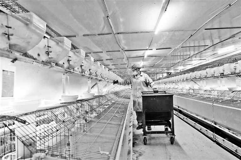 近年来,奉新县干洲镇积极探索“统战+特色产业”发展模式,吸引乡贤返乡创业,为乡村振兴注入新活力。图为12月30日,工作人员在返乡青年谢烈旺创办的鑫喆兔业养殖场给肉兔添食。通讯员 李 琪摄