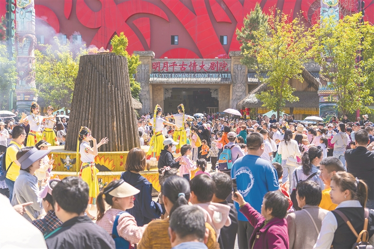 业态品质持续升级。明月山1420高山火车营地开营以来预订率始终保持在90%以上,成为宜春及周边地区亲子游首选目的地。景区利用闲置场地打造竹隐静舍高端民宿,将山野老屋改造为瀚德山居高端民宿,为游客提供沉浸式康养体验,让游客尽享“推窗见山、枕星而眠”的惬意。大型歌舞《明月千古情》完成升级改版,创新编排上演《年年有余》《新春快闪》等外场节目,并结合场景编创上演《夏皇后省亲》20场,年接待游客突破300万人次,为游客带来丰富的文化盛宴。