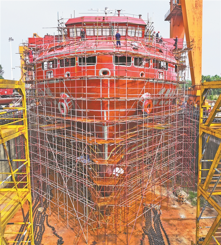 | 2025年9月19日,在湖口县江西江新造船有限公司,全球最大、国内首制的万吨级纯电动高端智能海船——“740TEU纯电动敞口集装箱船”正在紧张建设。 吴文兵:2025年,我见证了一艘纯电动高端智能巨轮从零部件焊接到成功下水,再到安装动力电池的全过程。高端制造业的发展,彰显了国家蓬勃向上的伟力。时间滚滚向前,你我亦向前。 |