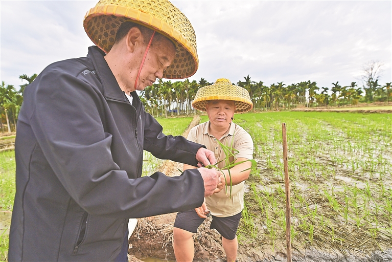 | 2025年12月11日,位于海南省乐东黎族自治县的农峰南繁科技有限公司制种基地,张理高和张海峰在田间交流水稻制种技术。 杨继红:2025年是萍乡南繁制种50周年。我多次采访拍摄,用镜头讲述了三代制种人跨越山海的“追光”故事,也见证了赣琼两地携手共赢的丰硕成果,期待萍乡种子在南繁沃土孕育出更大希望。 |