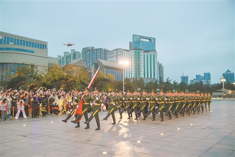 1月1日,南昌市举行“弘扬爱国志 奋进新征程”八一广场元旦升旗仪式,来自五湖四海的游客与市民齐聚于此,在新年的第一缕晨光中,共同见证五星红旗冉冉升起。本报全媒体记者 吴福清摄