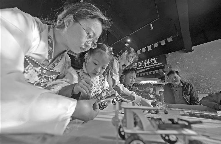 2026年1月1日,在福建省泉州市泉港区科技馆,孩子们在家长的陪伴下参加趣味手工课。新华社发(林弘梫摄)