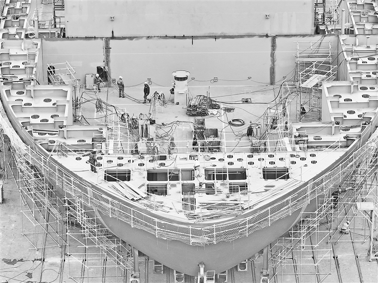 1月4日,在江苏省南京市一船厂内,工人们抓紧完成船舶制造订单。元旦过后,各地企业纷纷开足马力抓紧生产,赶制订单,力争新年“开门红”。 新华社发(刘建华摄)