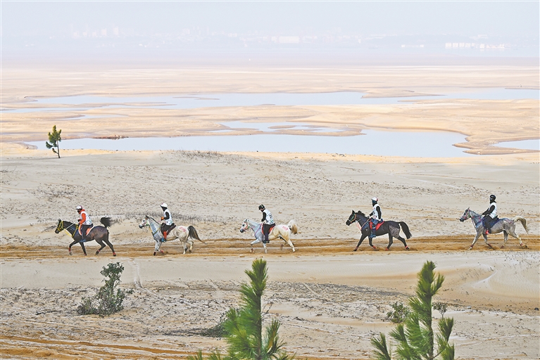 作为多次征战都昌赛道的“老朋友”,骑手隋博对这里的赛道有自己的理解:“我在国际上跑了将近200场比赛,都昌的赛道难度中等偏上,上坡多、沙道多,特别考验人马配合。”首次到访参赛的骑手陆志烁,则被赛道的独特魅力深深吸引:“赛道位于鄱阳湖湖畔,风景秀丽。地形起伏,跑起来十分刺激,但体验感很好。”
