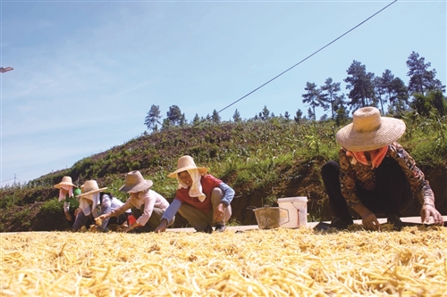 “从想放弃到有信心,多亏了技术帮扶。”村干部王灿淦的转变颇具代表性。工作队先后组织100余名县乡村干部,到福建省盛产太子参的柘荣县、贵州省太子参之乡施秉县、我省广昌县等地学习种植技术,积极邀请太子参太空育种专家和北京农学院科研人员等现场指导,帮助良坊镇白渡村和岐下村等村培养出5名“土专家”和小能人,以及60余名熟练工。通过培养“土专家”、创新“三早”种植法、实施“两选一优”精细化管护,2025年,白渡村太子参在种植面积优化调整后,亩产实现翻番,最高达500余斤,老把式们干起活来也更加得心应手。