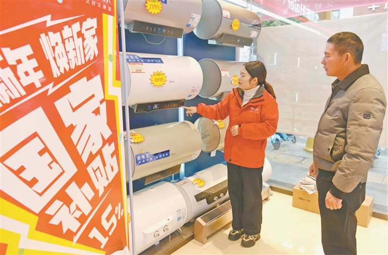 1月5日,宁都县一家家电专卖店内,店员正细致地向顾客介绍可享受国家补贴的家电。本报全媒体记者 杨文斌摄