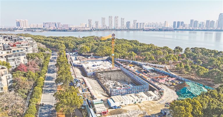 南昌市东湖区青山湖西岸环境整治提升项目旨在打造集生态休闲、文化体验于一体的滨湖森林休闲公园,为市民提供更多优质休闲场所。图为1月7日,无人机航拍项目施工现场。 本报全媒体记者 张翰林摄