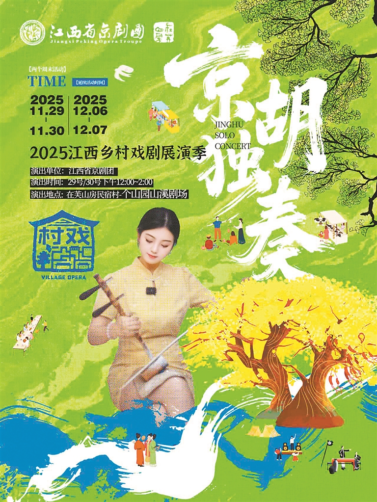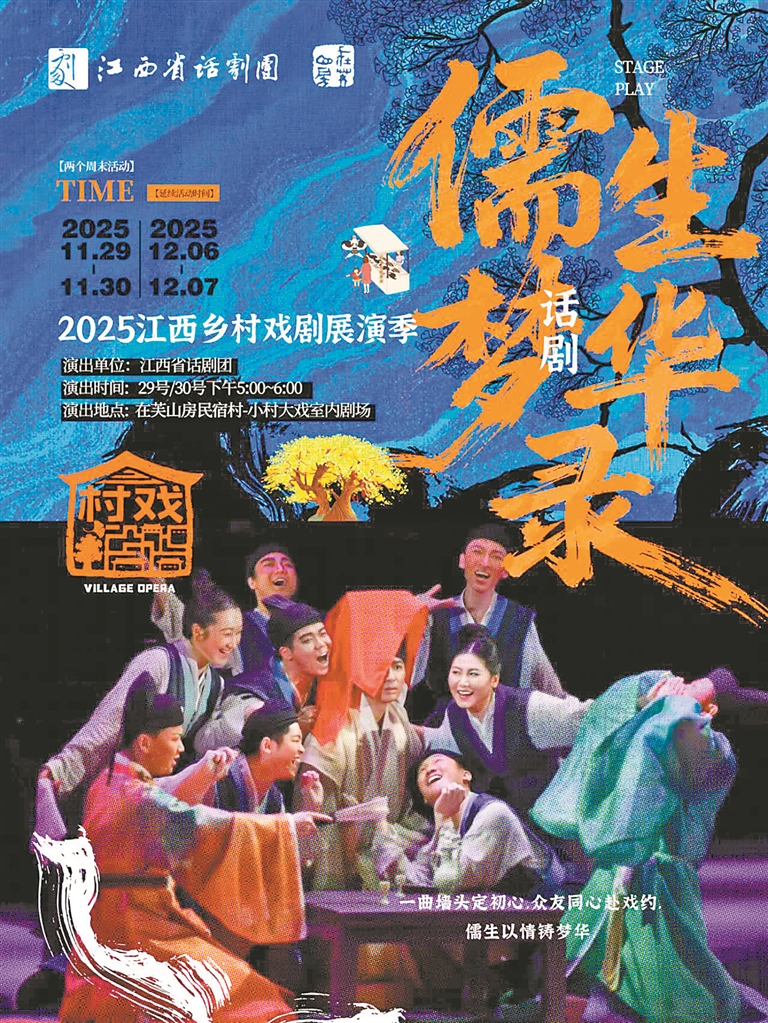 解锁“村戏”,其实也是在探索“专业院团+乡村田野”的跨界合作模式。“这并非孤立的乡村文化活动,同时也是‘演艺新空间’理念在乡村场景的又一具体实践。”省文演集团相关负责人告诉记者,在为期两个周末的活动中,戏剧不再局限于单一舞台,而是渗透到古村的石阶、院落、晒谷场、山林间,游客漫步时可能偶遇凉亭下的京剧选段表演,也可跟随木偶剧演员巡游穿梭村巷,这种“随处是舞台、随时遇艺术”的沉浸感,与江西文演集团过往演艺新空间“打破边界、贴近大众”的理念高度契合。