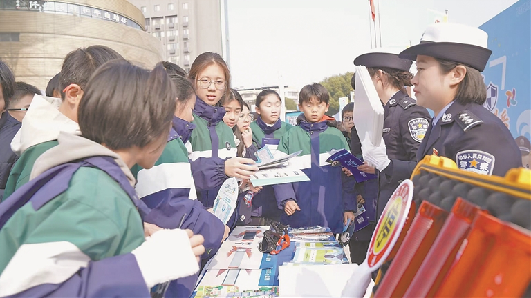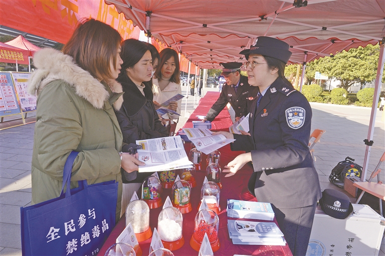 1月9日,在中国人民警察节来临之际,宁都县公安局在该县翠微广场组织开展“110宣传日”活动。图为宁都县公安局交管大队民警正在向群众普及交通安全知识。本报全媒体记者 杨文斌摄