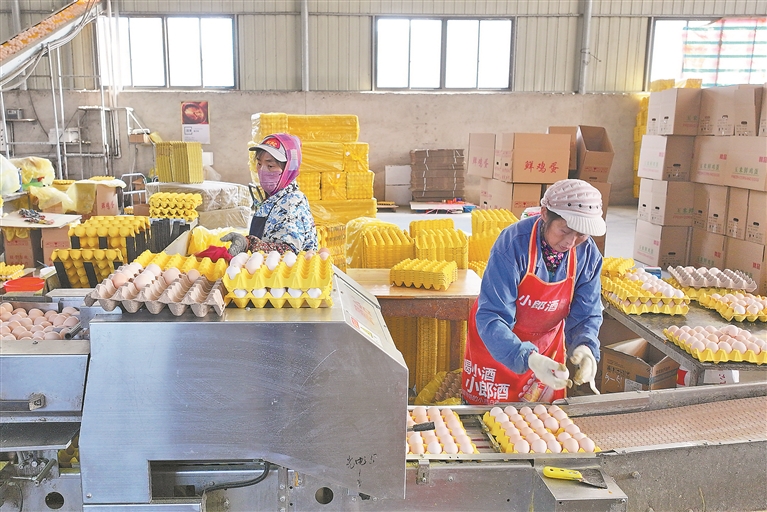 1月9日,宜丰县新庄镇全裕养殖有限公司鸡蛋包装车间,员工忙着打理包装鸡蛋供应市场。该公司年产能达60万羽蛋鸡,鸡蛋产品远销广东等地。