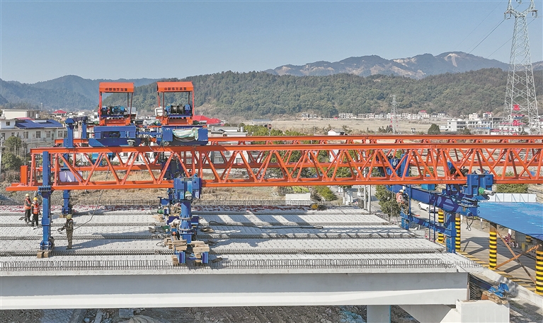 1月11日,萍乡绕城高速公路芦溪县南坑镇圭田大桥建设现场,建设者抢抓工期加紧施工。该项目路线全长36.449公里,建成后,将融入萍乡市“三横一纵一绕城”高速公路网,促进萍乡市经济社会发展。特约通讯员 李桂东摄