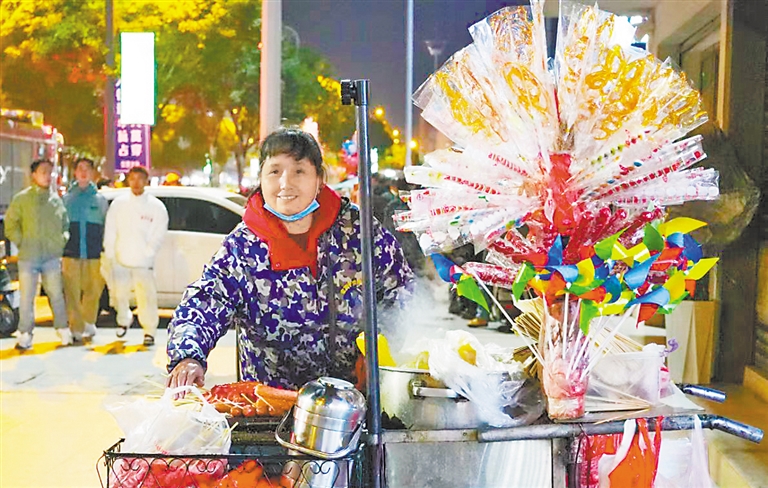 “这些设备都是政府免费提供的,摊位费也免了。”夜市摊主彭显茂告诉记者,他曾因要照顾老人,没法从事固定工作,一直琢磨着摆个小摊,灵活就业,可手头紧,连手推车、冰柜这些基本设备都置办不起。在当地政府的帮扶下,如今他实现了就业梦,每个月有了稳定的收入来源。