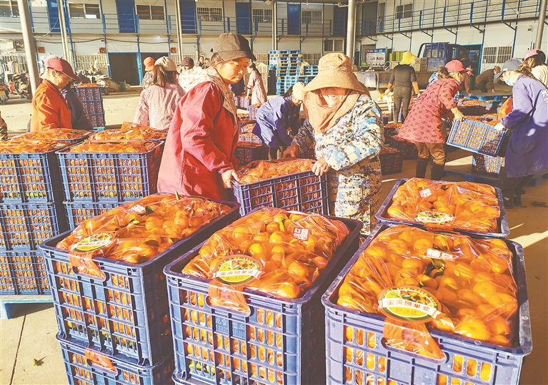 1月7日,永丰县七都乡马蹄洲村,果农在搬运刚采摘装筐的柑橘,准备装车销往市场。