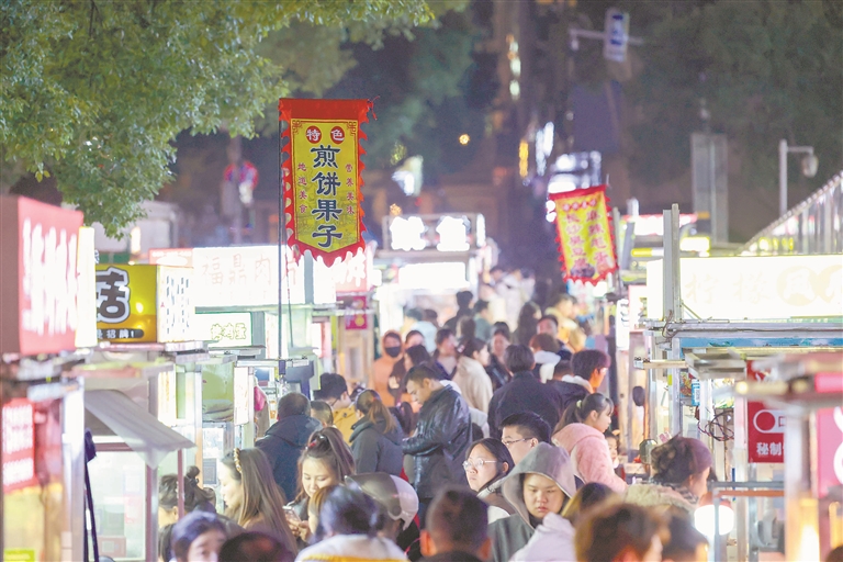 1月10日晚,市民和游客在庐山市秀峰大道美食街探寻美食,城市烟火气十足。该市充分考虑城市管理与社会需求具体情况,划定专门区域用于小吃、流动摊位经营,打造旅游美食打卡热点。通讯员 韩俊烜摄