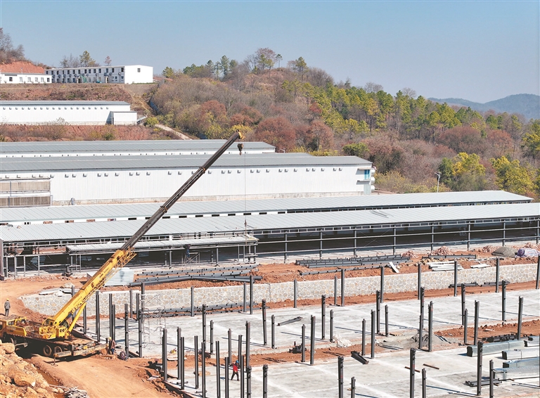 | 近年来,泰和县积极推进智慧化乌鸡养殖,实现饲料投喂、水冷控温等自动化,孵化智能化,提升养殖效能,助力环境保护。图为1月13日,该县傲昕乌鸡农牧发展有限公司智慧化养殖场正在加紧建设施工。通讯员 邓和平摄 |