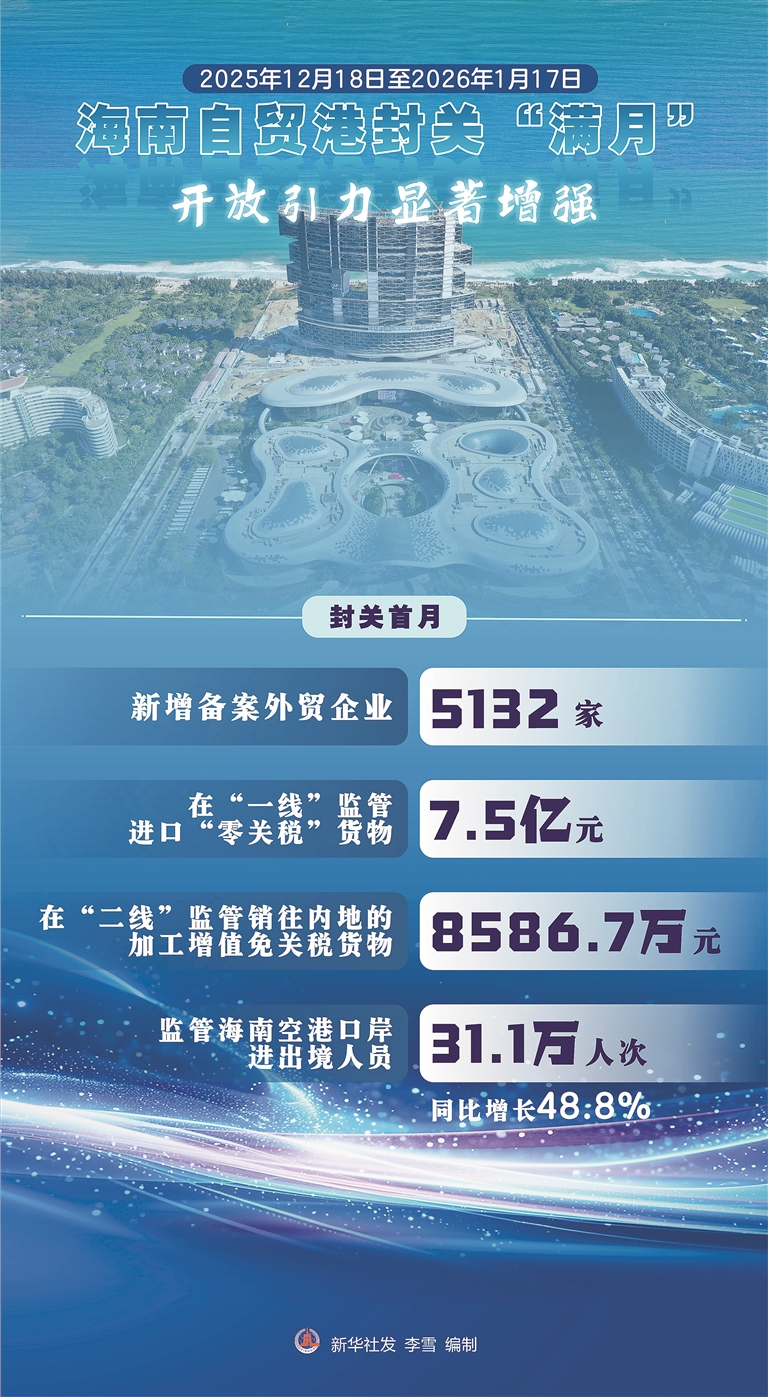 1月18日,海南自由贸易港封关运作满月。记者走访海南各地发现,政策红利持续释放、商旅活动人气旺盛、运输网络织密升级,开放发展呈现新气象。