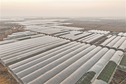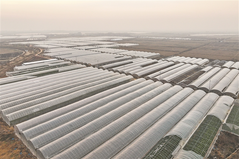 1月17日,航拍镜头下的余干县瑞洪镇蔬菜种植基地,成片的蔬菜大棚蔚为壮观。该基地作为禁捕退捕转产转业种养基地,吸纳当地100多名渔民就业,人均年收入4万元以上。本报全媒体记者 洪子波摄