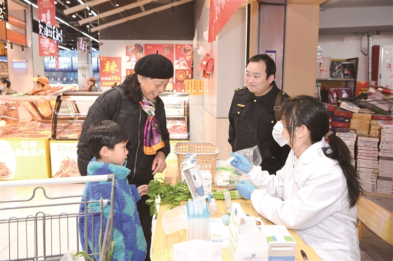 食品安全监管,全链条闭环“织密网”。出台强化食品安全全链条监管若干措施,完善多部门协同联动机制。探索食品安全监管能力提升实训基地和实训点管理,搭建“政、企、研”协同育人平台。“互联网+明厨亮灶”AI智慧监管,AI隐患告警数大幅下降。在鹰潭农产品批发市场首创“211快法检联动”模式,得到国务院食安办肯定并在全国作典型发言。在全国率先探索食品添加剂“减品种、减用量”治理新模式。