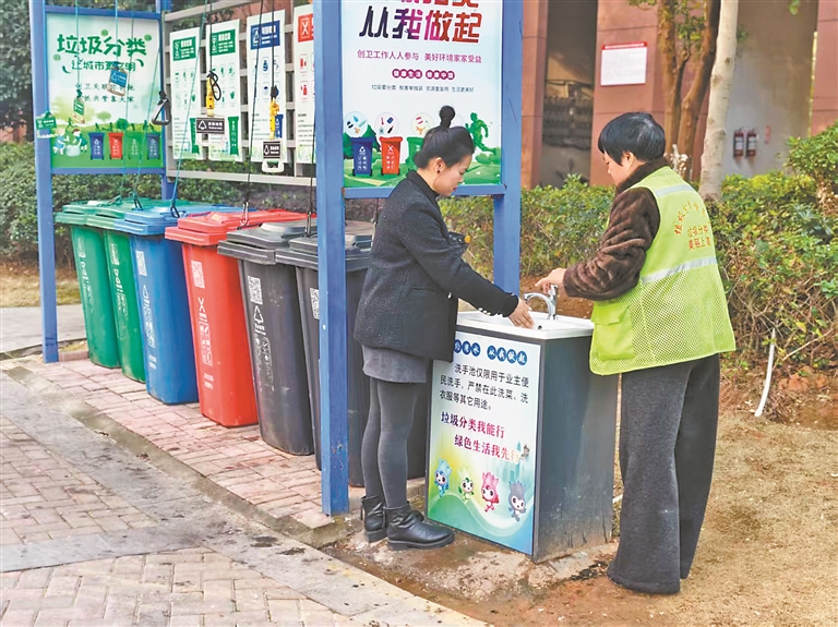“以前扔完垃圾,手上总黏糊糊的,就盼着赶紧回家洗手。现在好了,亭子里就有洗手池,水流又稳又干净,太方便了!”家住东方星城小区的王阿姨一边洗手一边说。接地气的“微改造”,不仅让小区环境更整洁清爽,更让居民在参与垃圾分类的过程中,真切感受到被重视、被关怀,大家践行垃圾分类的积极性和主动性高涨。