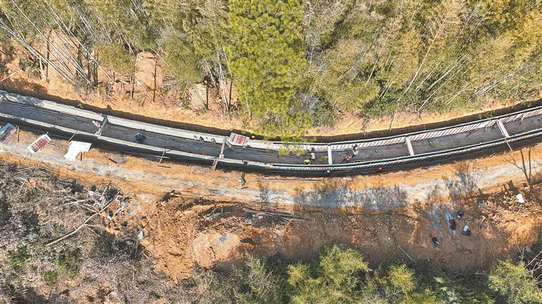 1月14日,在奉新县宋埠镇沿溪村跃进水库灌区修建现场,施工人员忙着安装浇筑模板。该灌渠全长5.36公里,覆盖沿溪、天宝两个行政村,可保障1万余亩农田的灌溉需求。特约通讯员 邓建刚摄