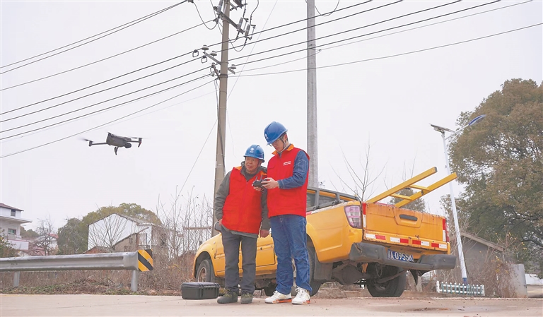1月21日,国网南昌县供电公司利用无人机开展立体巡视,精准排查线路覆冰、树障等隐患,确保低温天气下电力供应安全可靠。 通讯员 刘 宇摄