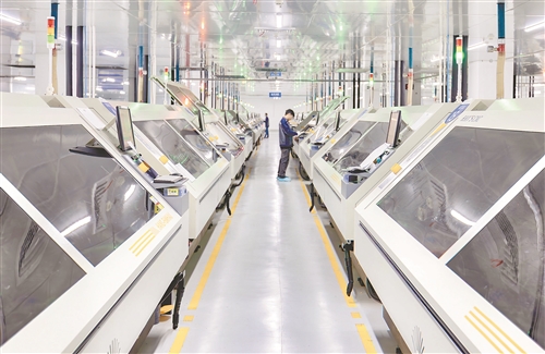 鹰潭国家高新技术产业开发区聚焦电子电路产业延链补链强链,精准引育科创型企业,推动智造产业集群化发展。图为1月14日,园区内的诚瑞电路有限公司车间里,工人正专注开展覆铜板裁切、层压成型等精密工序。本报全媒体记者 徐铮摄