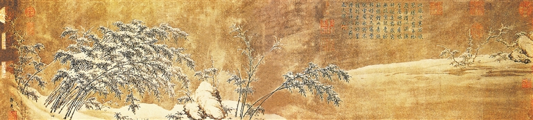 冬天,天地素裹,琼花纷扬。庭前修竹被雪压弯了腰,却仍挺着青玉般的脊梁,在银白世界里透出倔强的绿意。约700年前,元代画家郭畀(1280—1335)所绘的《雪竹图》(如图),表现的正是这样一种景象。