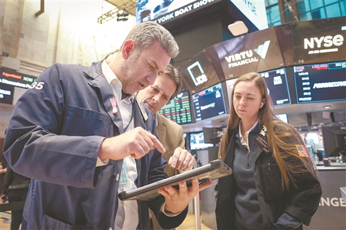 1月21日,交易员在美国纽约证券交易所交易大厅内工作。纽约股市三大股指21日上涨。新华社/路透