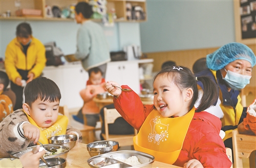| 2025年12月16日,孩子们在峡江县托育服务中心吃午餐。通过政策扶持、资源整合,当地全力打造“15分钟托育圈”,有效缓解育儿压力,提升民生幸福感。 本报全媒体记者 吴文兵摄 |
