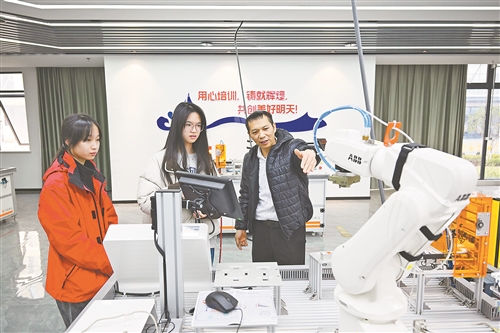 | 2025年12月17日,赣州市章贡区数字产业高技能人才培训基地,学员正在进行工业机器人操作和维修实训。随着人才培育工作的深入推进,一批兼具理论素养与实战能力的数字人才将在推动经济高质量发展中释放青春能量。 本报全媒体记者 吴文兵摄 |