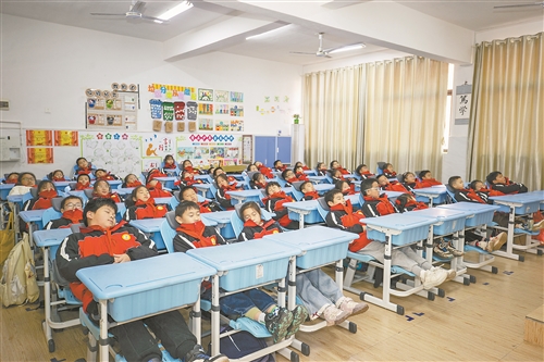 | 2025年全省73个试点实施单位、485所中小学共采购配备15.6万套“可躺式”课桌椅,得到学生、家长及社会各界的肯定。本报全媒体记者 吴福清摄 |