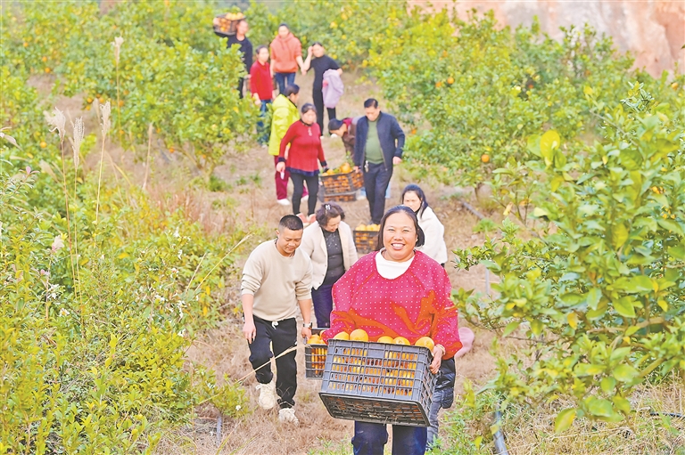 | 2025年12月9日,万载县高城镇联胜村,果农们穿梭在果园忙着采收脐橙。当地将脐橙产业作为重点发展的农业特色产业之一,形成了完整的生产、供应、销售产业链条,为乡村振兴注入新活力。特约通讯员 邓龙华摄 |