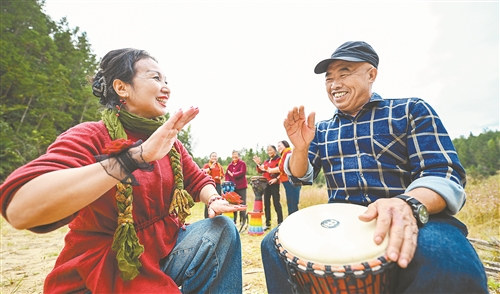 | 2025年10月27日,靖安县官庄镇龙岗村,村民正在学习体验非洲鼓。为丰富农村居民的精神文化生活,当地不定期开展形式多样、特色鲜明的活动,助力老年人老有所学、老有所乐。本报全媒体记者 张翰林摄 |