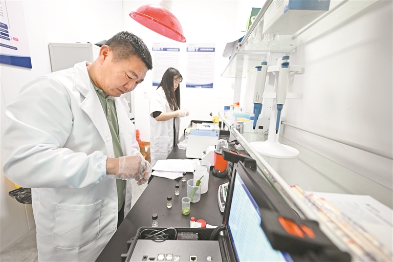 | 2025年4月29日,在丰城市秀市镇标准化食品快检室,工作人员对市场上蔬菜、肉类、粮油进行高频次安全检测,守护群众“舌尖上的安全”。本报全媒体记者 吴文兵摄 |